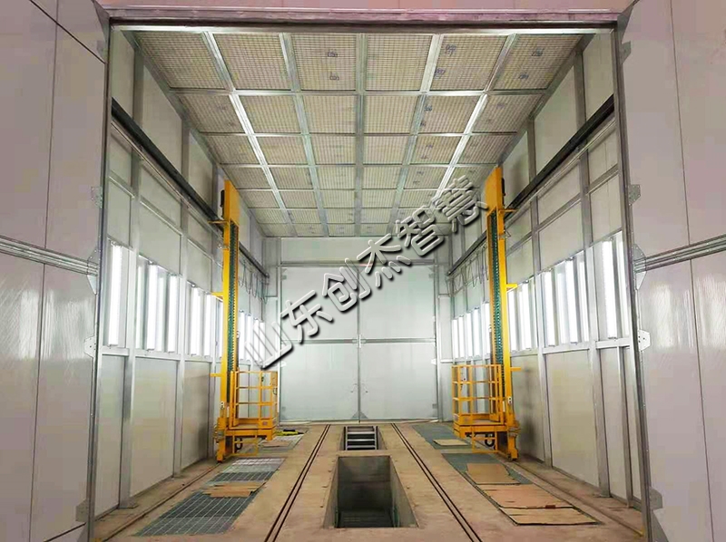 噴漆房室內凈尺寸長18米,寬6.5米,高5米,兩套噴漆房房并排分布。