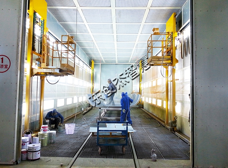噴漆房由室體、送風系統、排風系統、水旋漆霧處理系統、廢氣處理系統、照明系統、三維工作平臺、安全報警系統、控制系統等組成。