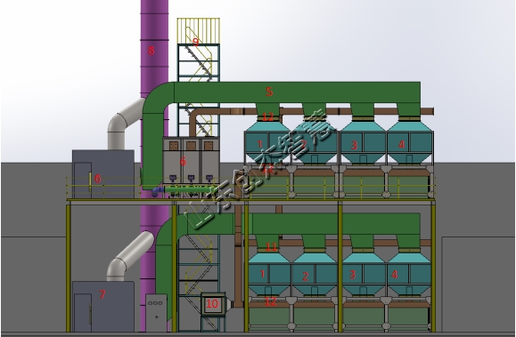 4——4號(hào)吸附床 12——脫附風(fēng)閥