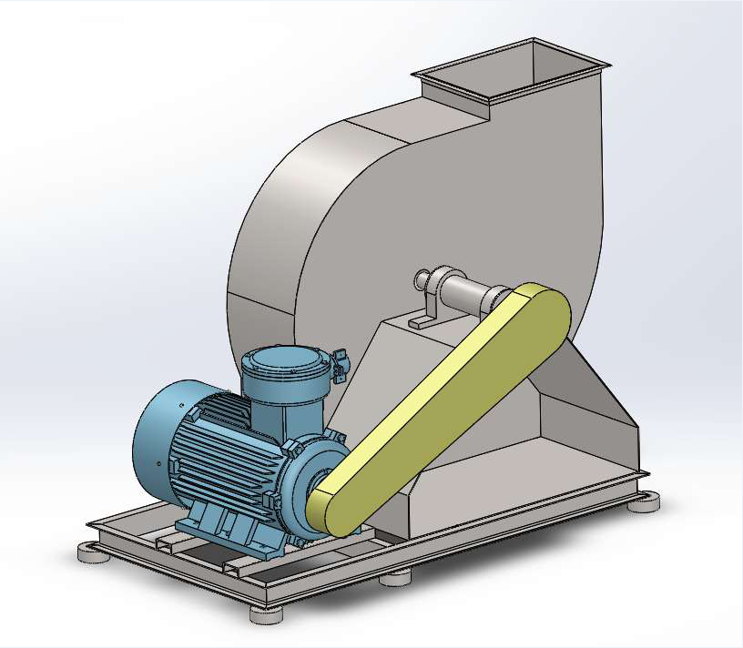 (1)風機、電機裝配在減振基座上,下設優質的阻尼彈簧減振器,風機進出風口設置軟連接。防爆離心風機配備減震臺座和減震器并安裝在鋼結構支架上,可以有效降低設備運行的噪音,延長設備使用壽命