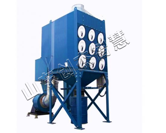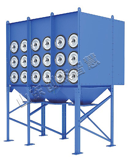 濾筒除塵器由進(jìn)風(fēng)管、排風(fēng)管、箱體、灰斗、清灰裝置、濾筒及電控裝置組成。