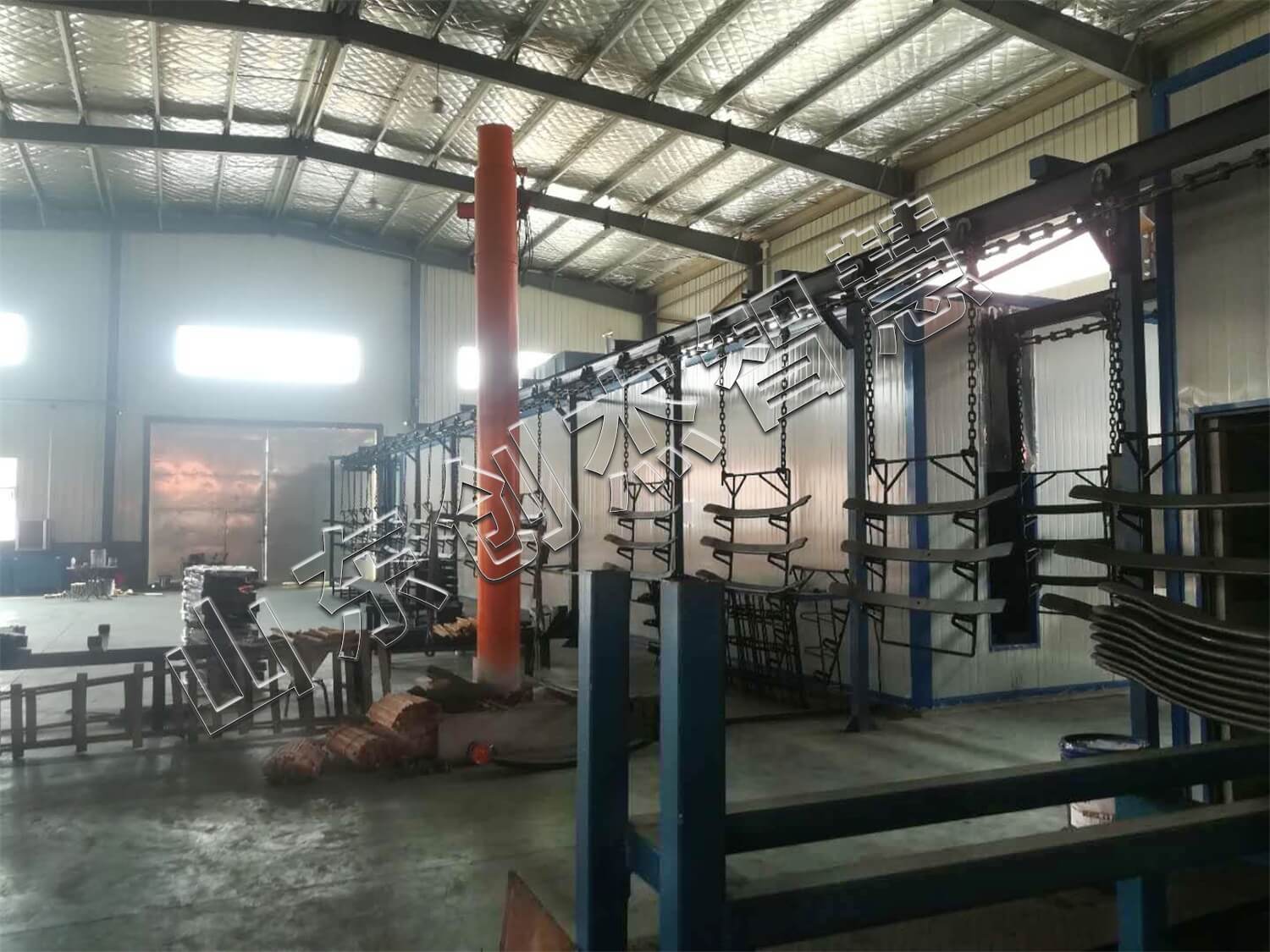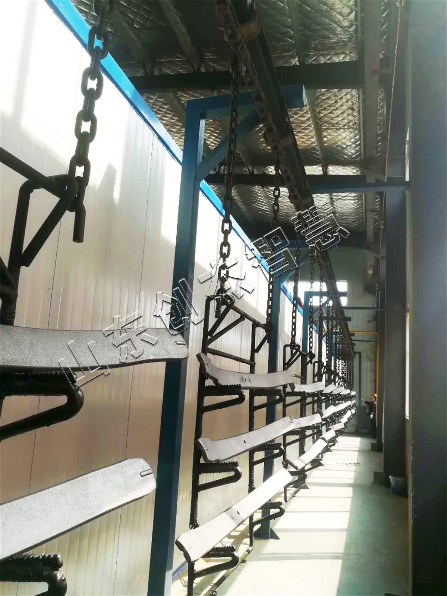涂裝流水線的七大組成部分主要包括:前處理設備、噴粉系統(tǒng)、噴漆設備、烘爐、熱源系統(tǒng)、電控系統(tǒng)、懸掛輸送鏈等。 1、前處理設備 噴淋式多工位前處理機組是表面處理常用的設備,其原理是利用機械沖刷加速化學反應來完成除油、磷化、水洗等工藝過程。鋼件噴淋式前處理的典型工藝是:預脫脂、脫脂、水洗、水洗、表調(diào)、磷化、水洗、水洗、純水洗。前處理還可采用拋丸清理機,適用于結構簡單、銹蝕嚴重、無油或少油的鋼件。且無水質(zhì)污染。 2、噴粉系統(tǒng) 粉體噴涂中的小旋風+濾芯回收裝置是較先進,換色較快的粉末回收裝置。噴粉系統(tǒng)的關鍵部分建議選用進口產(chǎn)品,噴粉室、電動機械升降機等部件全部國產(chǎn)化。 3、噴漆設備 如油淋式噴漆室、水簾式噴漆室,廣泛運用于自行車、汽車鋼板彈簧、大型裝載機的表面涂裝。 4、烘爐 烘爐是涂裝生產(chǎn)線中的重要設備之一,它的溫度均勻性是保證涂層質(zhì)量的重要指標。烘爐的加熱方式有:輻射、熱風循環(huán)及輻射+熱風循環(huán)等,根據(jù)生產(chǎn)綱領可分單室和通過式等,設備形式有直通式和橋式。熱風循環(huán)烘爐保溫性好、爐內(nèi)溫度均勻、熱損失少,經(jīng)測試,爐內(nèi)溫差小于±3oC,達到先進國家同類產(chǎn)品的性能指標。 5、熱源系統(tǒng) 熱風循環(huán)應用較普遍的加熱方式,它利用對流傳導原理對烘爐進行加熱,達到工件的干燥和固化。熱源可根據(jù)用戶的具體情況選擇:電、蒸汽、燃氣或燃油等。熱源箱可根據(jù)烘爐的情況而定:置于頂部、底部和側部。生產(chǎn)熱源的循環(huán)風機如是特制耐高溫風機,則具有壽命長、能耗低、噪聲低、體積小等優(yōu)點。 6、電控系統(tǒng) 涂裝、涂裝流水線電氣控制有集中和單列控制。集中控制能采用可編程序控制器(PLC)來控制主機,根據(jù)編制的控制程序?qū)Ω鞴ば蜻M行自動控制,數(shù)據(jù)采集和監(jiān)視報警。單列控制是涂裝生產(chǎn)線中常用的控制方式,各個工序單列控制,電控箱(柜)設置在設備附近,造價低、操作直觀、維修方便。 7、懸掛輸送鏈 懸輸機是工業(yè)流水線、涂裝線的輸送系統(tǒng),積放式懸輸機應用于L=10-14M的倉儲貨架和異型路燈合金鋼管涂裝線。工件吊裝在專用掛具上(承重達500-600KG),進出道岔平滑,道岔根據(jù)工作指令由電氣控制進行開合,滿足工件在各處理工位的自動輸送,在強冷室、下件區(qū)域內(nèi)平行積放冷卻,并在強冷區(qū)域設掛具識別和牽引報警停機裝置。